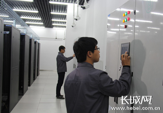 潤澤國際信息港機房內,技術人員正在對設備進行調試。記者祝雪娟攝