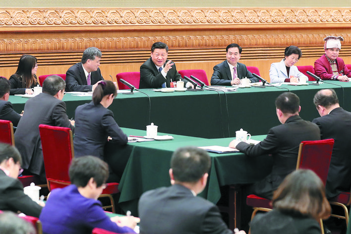3月7日,中共中央總書記、國家主席、中央軍委主席習(xí)近平參加十三屆全國人大一次會議廣東代表團的審議。新華社發(fā)(盛佳鵬攝)