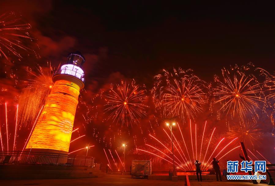 這是青島舉行的《有朋自遠方來》燈光焰火藝術表演(6月9日攝)。新華社記者邢廣利攝