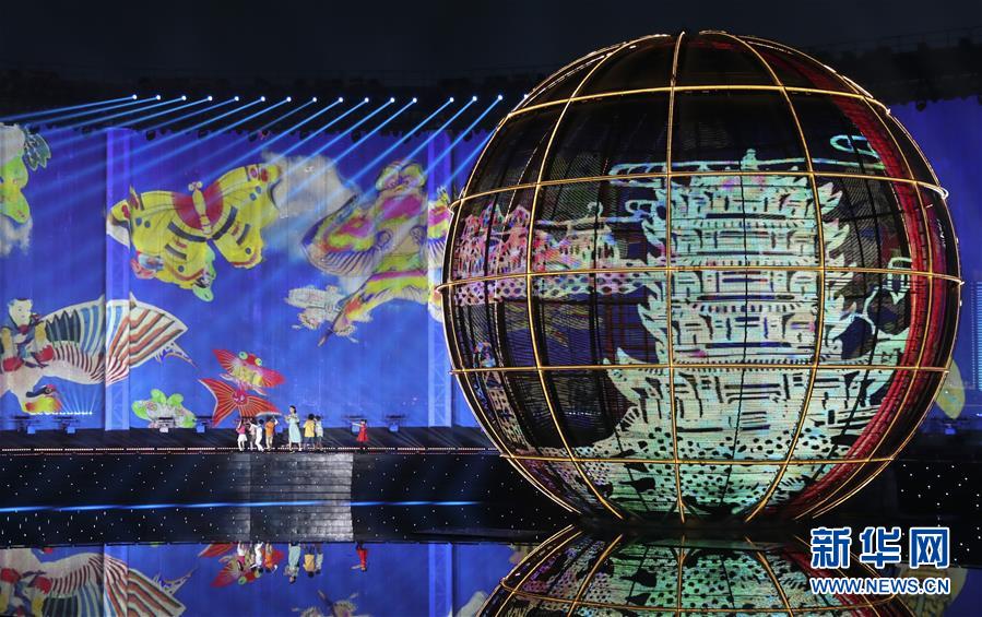 這是青島舉行的《有朋自遠方來》燈光焰火藝術表演(6月9日攝)。新華社記者謝環(huán)馳攝